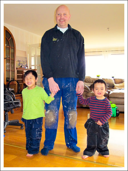 Efter genomgången så är det senare dags för lite klädprovning av ärvda kläder då det är dags att sortera in det som lagts på matsalsbordet då allt ska bort tills kalaset. Fick nu även ett par snickarbyxar till så dagen till ära så är alla 3 herrarna klädda i snickarbyxor och åker iväg till K-rauta för att handla lite till vedskjulet som Bosse håller på och bygger. Jag hinner i alla fall få undan en hel del tills de kommer tillbaka och det blir dags för lite lunch innan Bosse ska ut och arbeta. Väl färdiga med lunchen så ringer det på dörren och då kommer Emelie och Pontus lite smygande. De har då tagit fel på dag gällande kalaset men vi tog en extra fika för det. Efter ett tag så ringer det på dörren igen och då är det Mangan som är ute och provkör motorcykeln. Döm om min förvåning när han inte hittade Bosse där ute – gissa var han tagit vägen. Jo han har sniket till sig ytterligare en lite nap. Ja efter detta så fick han i alla fall tummen ur. Jag fortsätter här inne och plockar undan och barnen går ut till Bosse och försöker vara snälla och hjälpa till. Jag hör till slut att Bosse börjar bli lite irriterad och får in dem till mig i stället. Jag kan väl säga att det även berodde på att han började köra kapen och barnen var lite för nära den och då är det bäst att ta det säkra för det osäkra att ta in dem i stället. Vi är sedan så slut så det beställdes Pizza och Kebab. Kvällen avslutades sedan med earth hour då vi tände upp en massa ljus här hemma och alla belysning stängdes ner dock hade vi fortfarande på TVn. Till Isacs glädje så var det fortfarande gladiatorerna något som han blivit riktigit förtjust i. Vi kan väl säga att vi var rätt så trötta men tittade i alla fall på ny favoritserie Mord i paradiset. Sedan var det godnatt 🙂